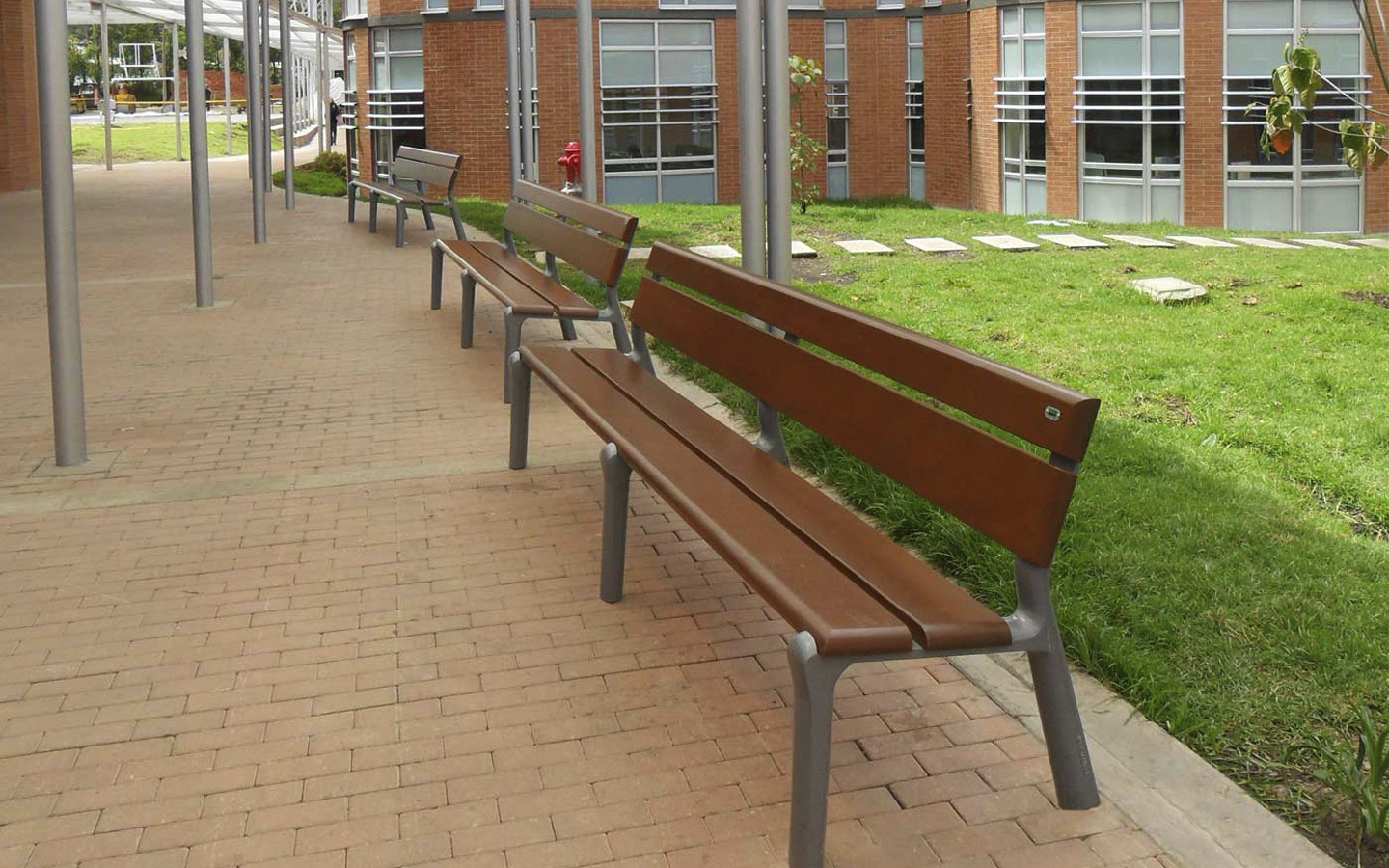 Bænken har fire planker i naturligt tropisk træ, behandlet med Lignus – en tredobbelt belægning, der beskytter mod svamp, insekter og fugt.