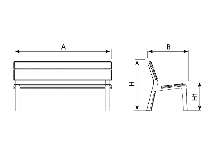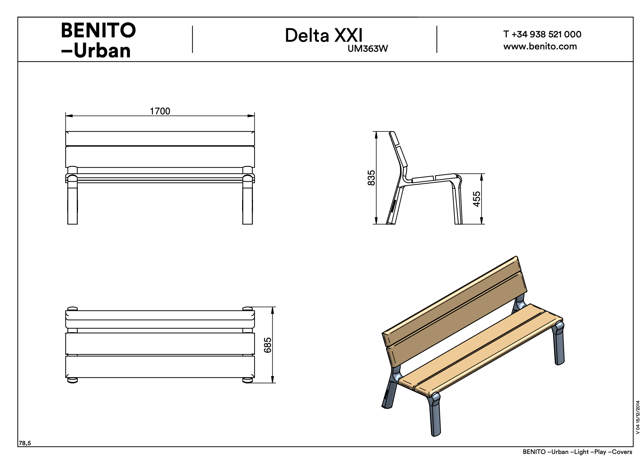 Designbænk DELTA XXI fra BENITO, samlede mål (længde x højde x dybde): 1700 x 835 x 685 mm.