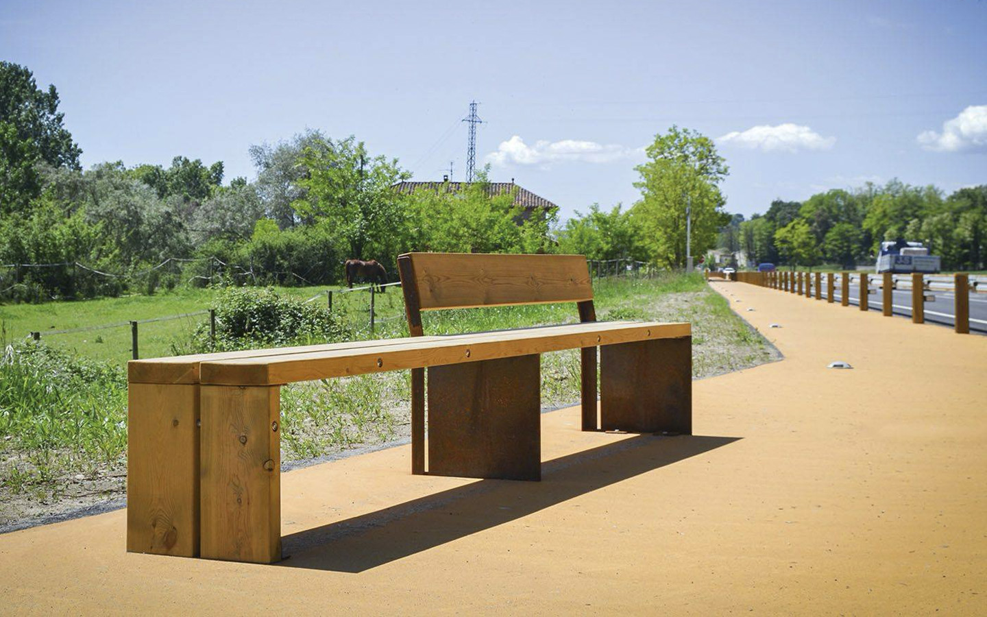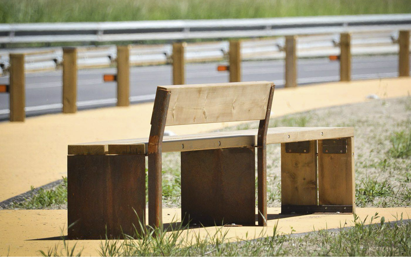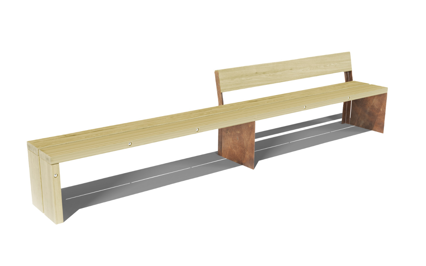 Bænk fremstillet med ben i 8 mm cortenstålplade.