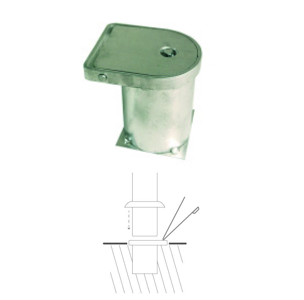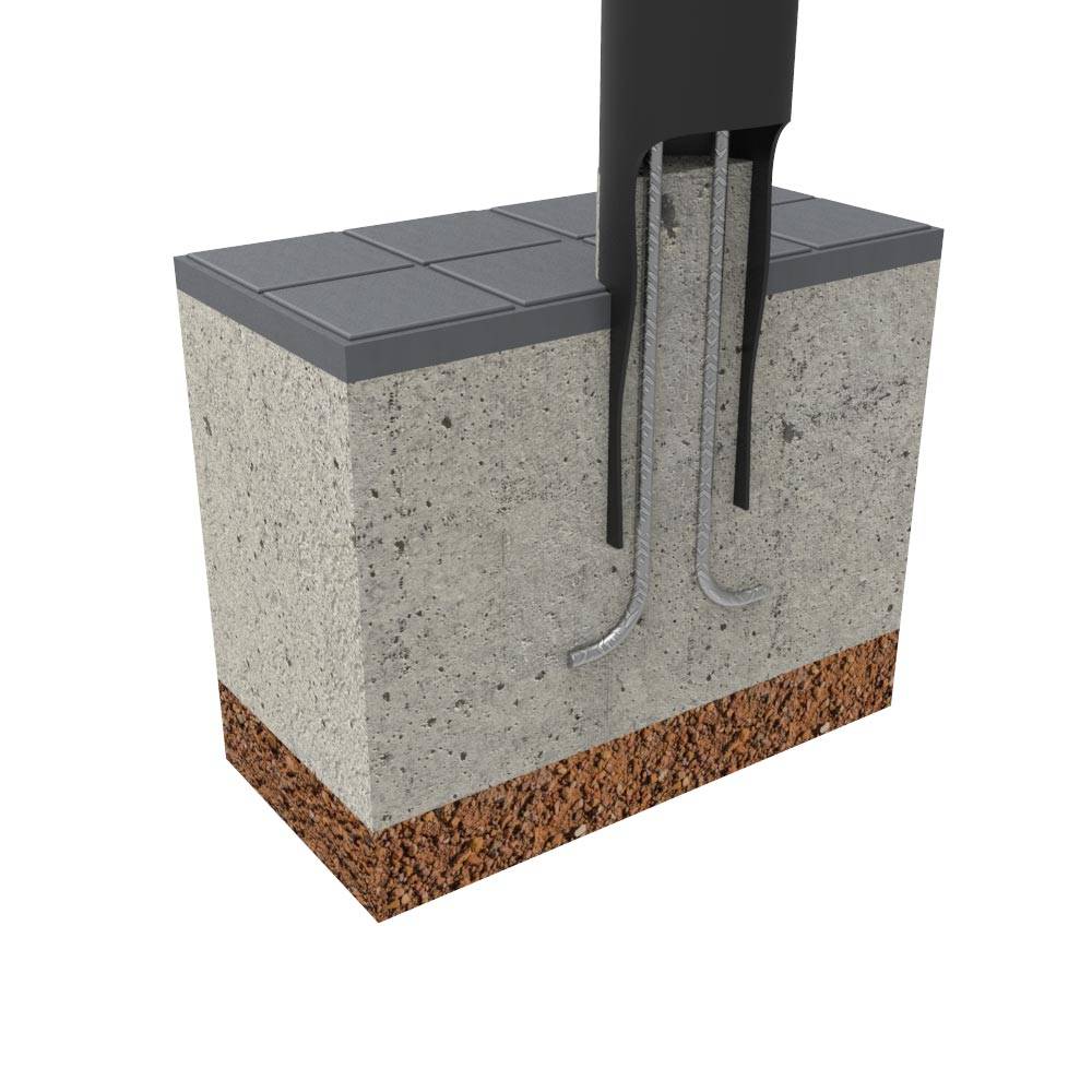 Anbefalet fastgørelse: Nedstøbt base og armeringsjern i beton.
