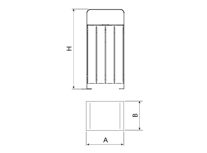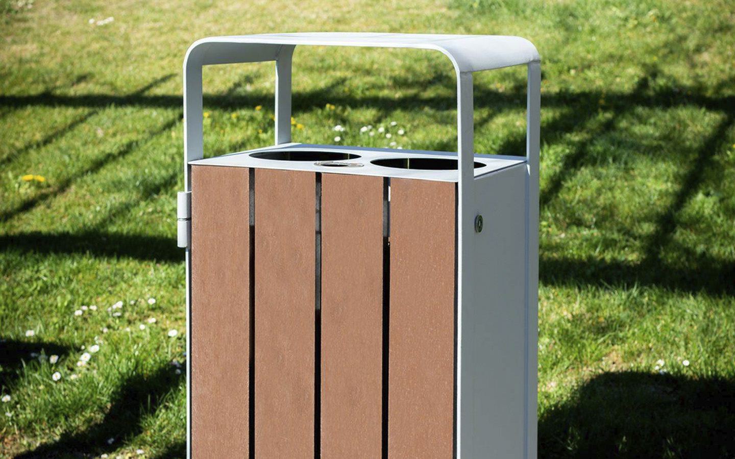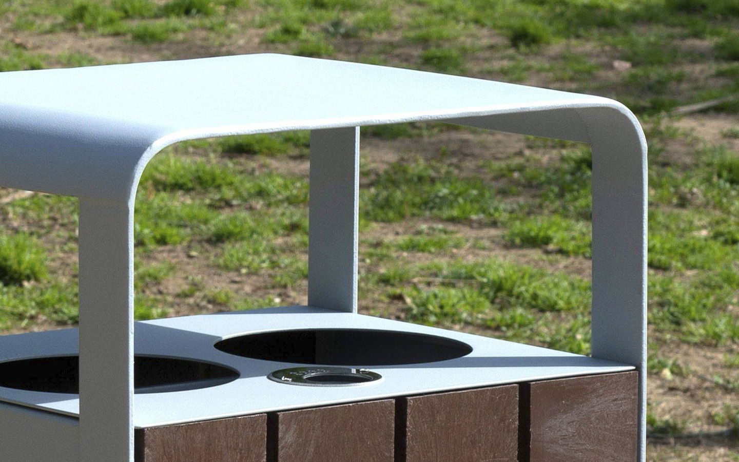 Affaldsspand fremstillet med ben i stål, 50 x 8 mm, behandlet med Ferrus – en beskyttelsesproces for jern, der sikrer optimal modstandsdygtighed mod korrosion.