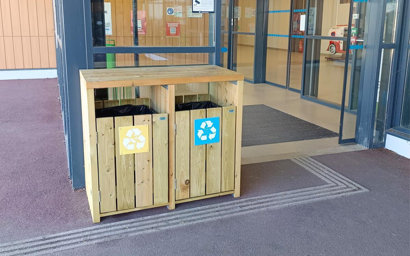 Affaldsspand fremstillet af ReBnew med dør for nem udskiftning af pose. Åbning på begge sider.