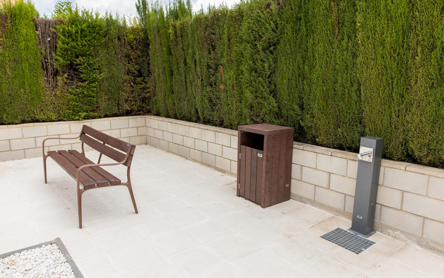 Modstandsdygtigt over for vejrpåvirkninger, olie, syrer og saltvand. Nedbrydes ikke og splintrer ikke. Anti-graffiti. Modstandsdygtigt over for fugt, absorberer ikke vand og tørrer hurtigt. MILJØVENLIGT, fremstillet af genbrugt og genanvendeligt materiale. Lang levetid. 100 % genanvendeligt. Ingen forurenende stoffer. Fremstillet af højkvalitets genbrugsplast.